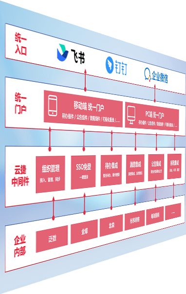 对协作平台提供支持服务,,,支持企业应用与协作平台对接,,,,包含组织同步、、、、消息集成、、、、待办集成等。。支持目前主流的协作平台:钉钉、、、、企微和飞书。。